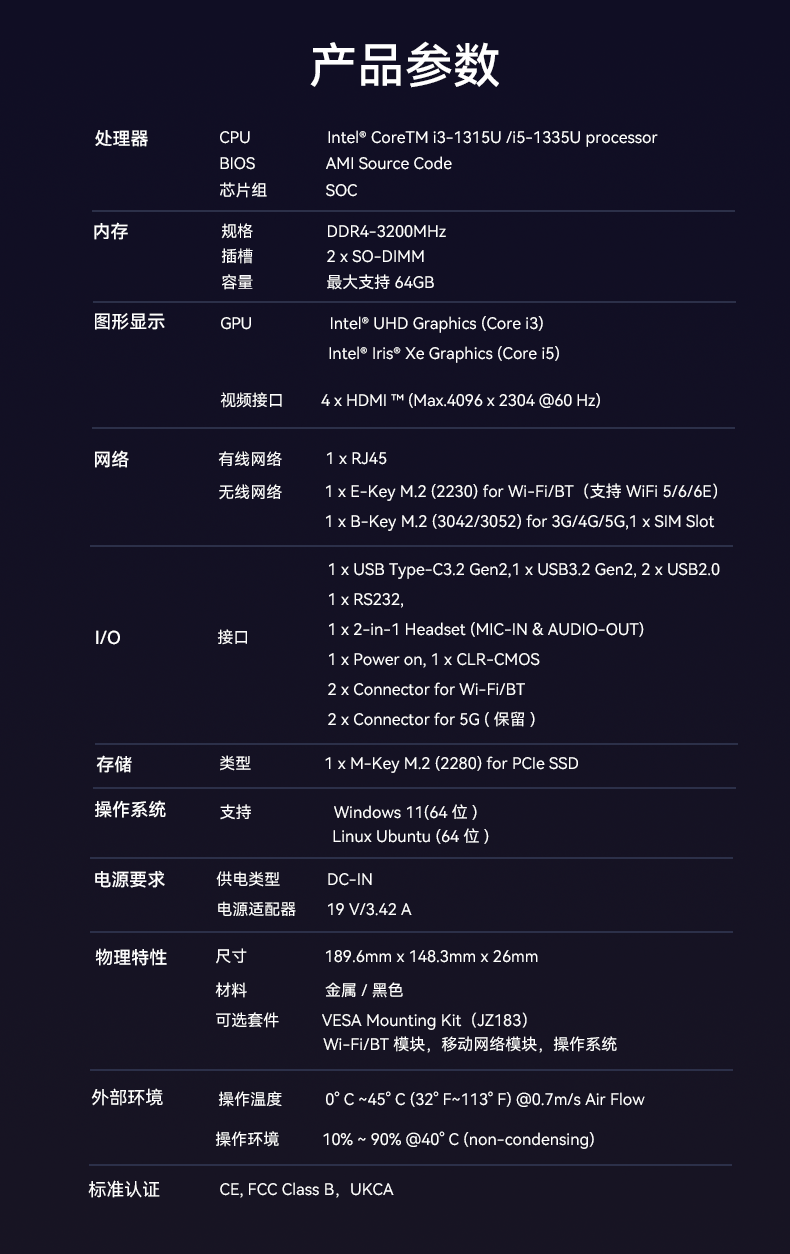 金年会|金年会·jinnian科技D613采用英特尔Raptor Lake酷睿i3-1315U/i5-1335U 处理器,作为一款性能强悍的主机,它的TDP仅15W,能有效降低能耗,延长电池寿命。在内存方面,D613采用2 x SO-DIMM DDR4-3200 MHz,最大可达64GB,并配备1 x M-Key M.2 (2280) for PCIe SSD。