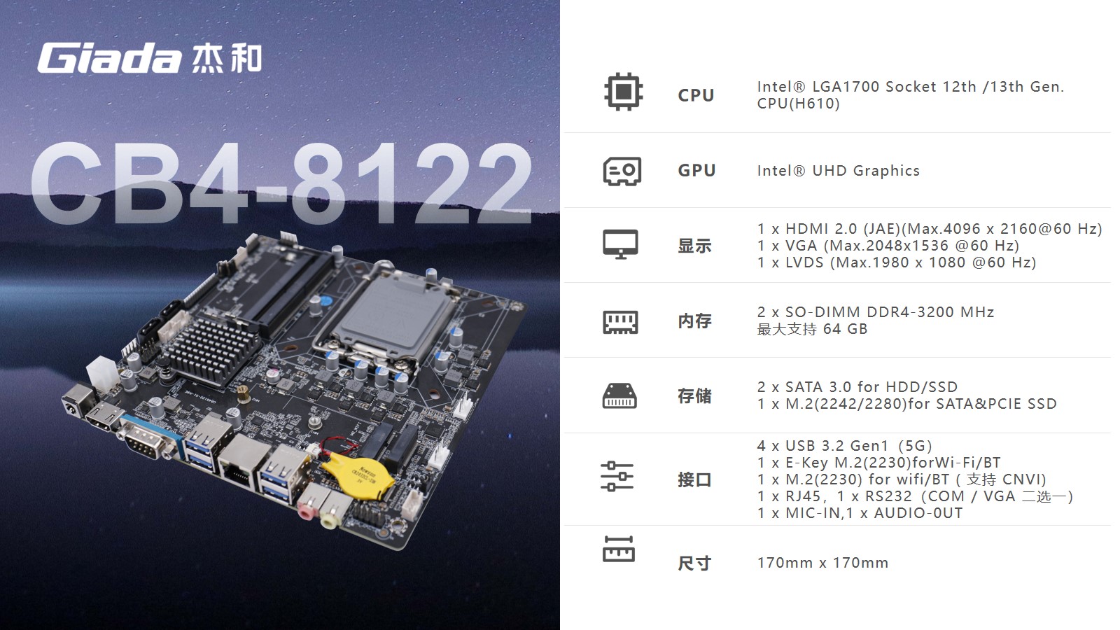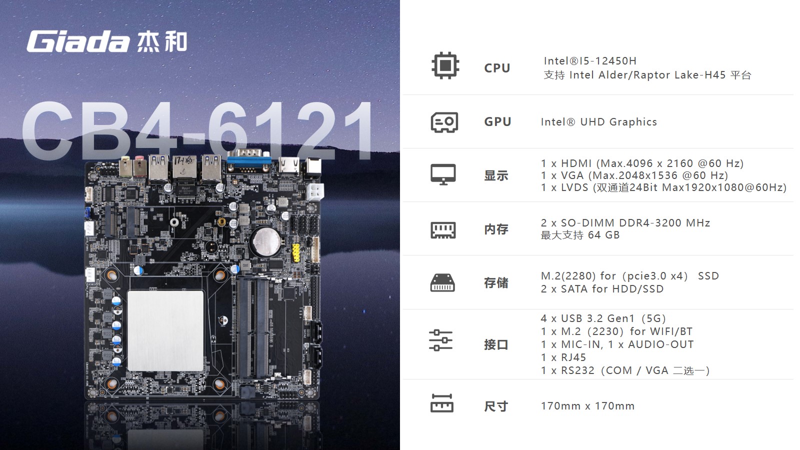 针对客户的办公及图形处理性能需求,金年会·jinnian选用了搭载Intel 12代Core i5-12450H处理器的主板,该处理器支采用Intel 7制程工艺,8核12线程设计,最大加速功耗高达95W,以及12M高速缓存,能为用户提供超强的计算能力和响应速度。并且i5-12450H处理器自带的48个EU单元的UHD核芯显卡,可实现流畅的影音娱乐和高画质游戏体验。