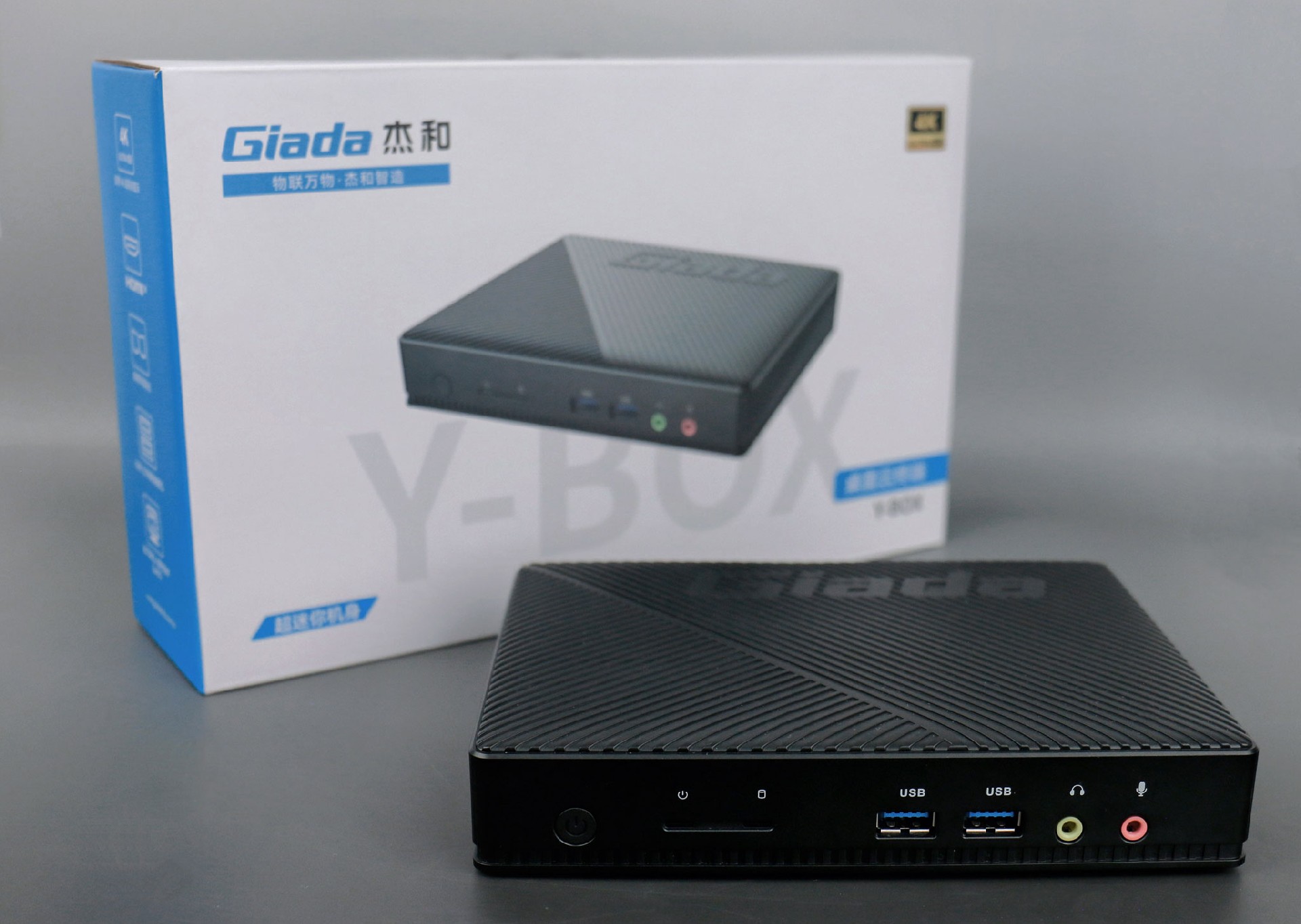 金年会|金年会·jinnian桌面云终端Y-BOX S2采用全新外观ID设计,主盖采用黑色哑光栅格,顶部刻印金年会|金年会·jinnianGiada品牌名,磨砂塑胶材质,高质感更轻盈。外包装采用简洁商务的风格设计,以金年会|金年会·jinnian蓝的配色作为点缀,内部采用严实防震的珍珠泡棉保护主机,同时,内部配备适配器、AC线、天线棒、螺丝包,满足通用需求。