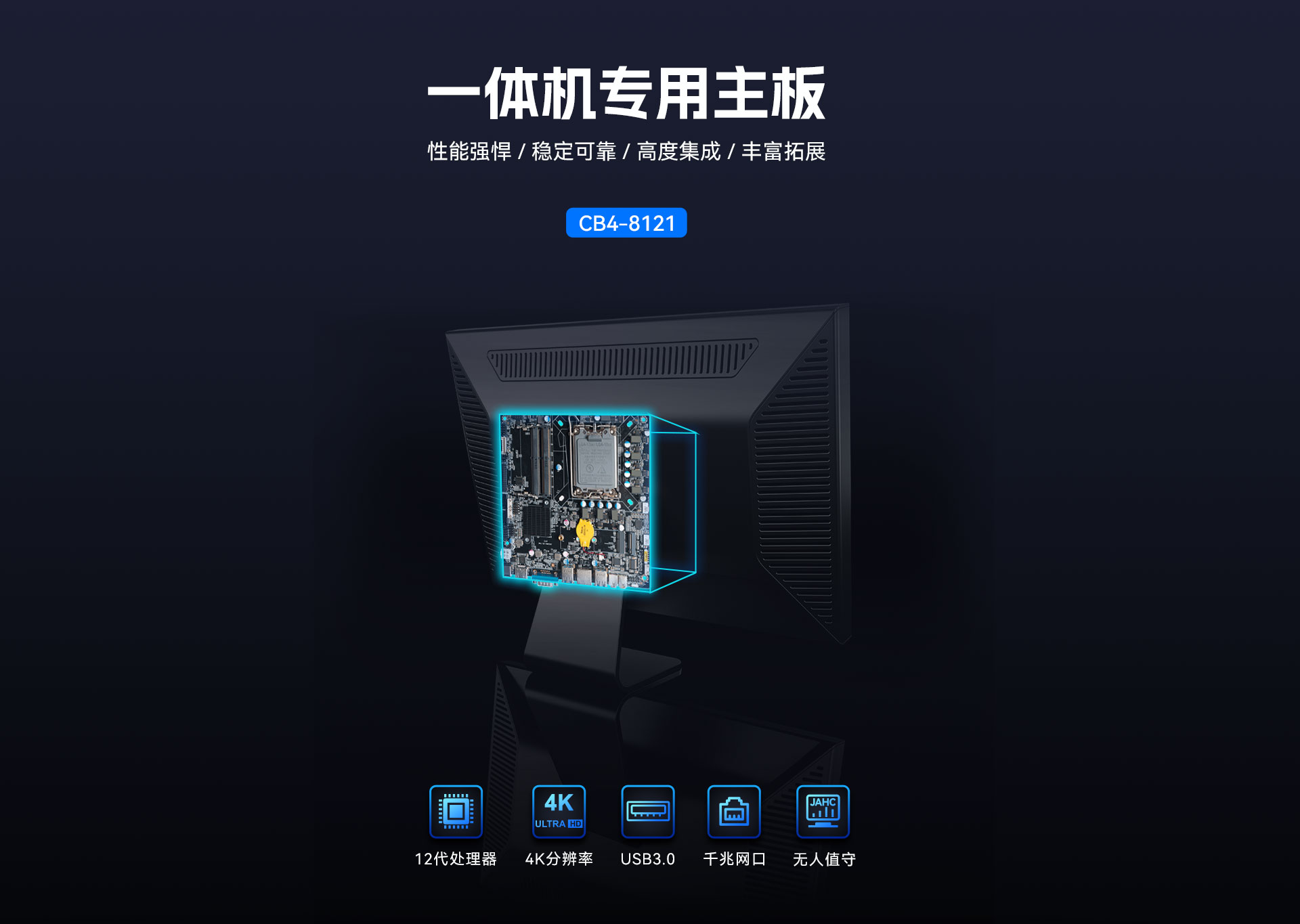 而一体机主板作为一体机的核心组件,其性能直接决定了整机的表现,金年会|金年会·jinnian科技根据以上的市场情况及客户需求,推出这款高性能的基于Thin mini ITX一体机标准设计的一体机专研主板CB4-8121。
