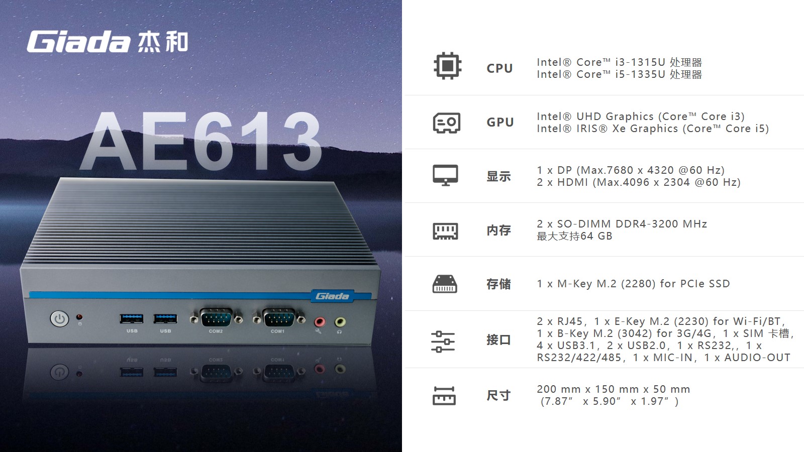 金年会|金年会·jinnian科技嵌入式整机AE613作为可支持8K的三显宽温宽压户外专用整机,可以使用的场景包括但不限于广告机生产商、户外广告、自助终端生产商、户外自助服务、自动化控制(工厂、仓储、物流、自动分拣等)、交通监控监测、政府自助服务;