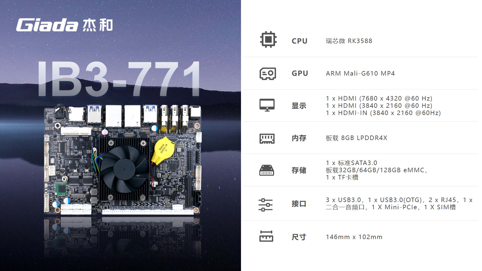 金年会|金年会·jinnian科技嵌入式主板IB3-771是8K人工智能主板,拥有轻算力的它可用于机器人、边缘计算、智能NVR、智能汽车、智慧大屏、AR/VR、ARM PC、智能自助终端等领域,还可用于监控、工业、餐饮、智能交通、文娱产业等对超高清视频需求旺盛的行业;